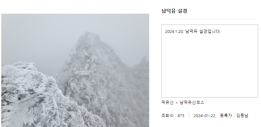 해마다 덕유산을 찾는 사람들이 있습니다. 많은 사람들이 덕유산을 찾는 이유는 눈꽃으로 덮인 모습이 참 아름답기때문입니다.