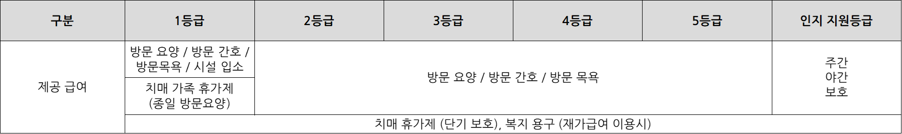 각 등급별 장기요양 혜택