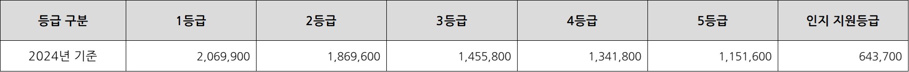 아래는 등급별 장기요양 혜택 표 입니다.