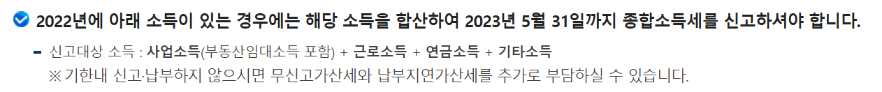 📌 종합소득세 신고기간 : 매년 5월 1일 ~ 5월 31일