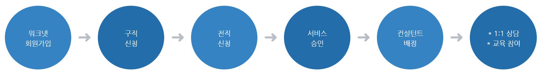 평생 현역 활동을 위한 생애 경력 설계, 전직 지원 서비스, 재도약 프로그램을 지원받는 것이며 서비스 신청 절차는 아래와 같습니다.