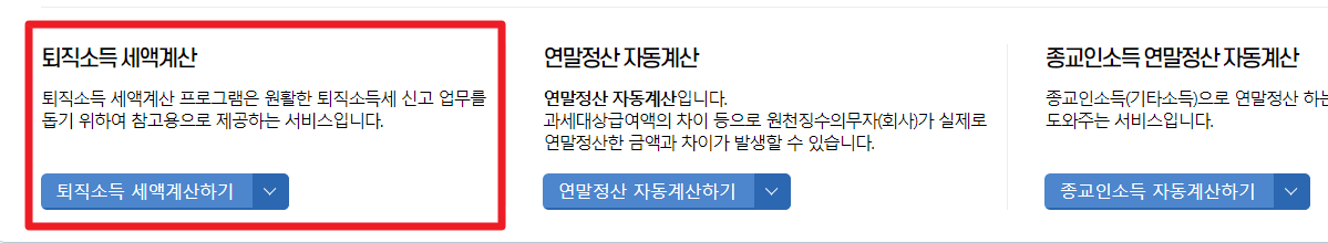 세금 계산기가 모여있는 아래 퇴직소득세 계산기로 바로 이동해보시겠습니다.