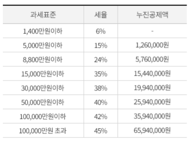 이 처럼 근속연수 뿐 아니라 내가 지금까지 받았던 급여 금액을 토대로 과세표준이 구해집니다. 일시금으로 지급받기 때문에 보통 퇴직소득 세율은 생각보나 높은 세율을 확인할 수 있습니다.
