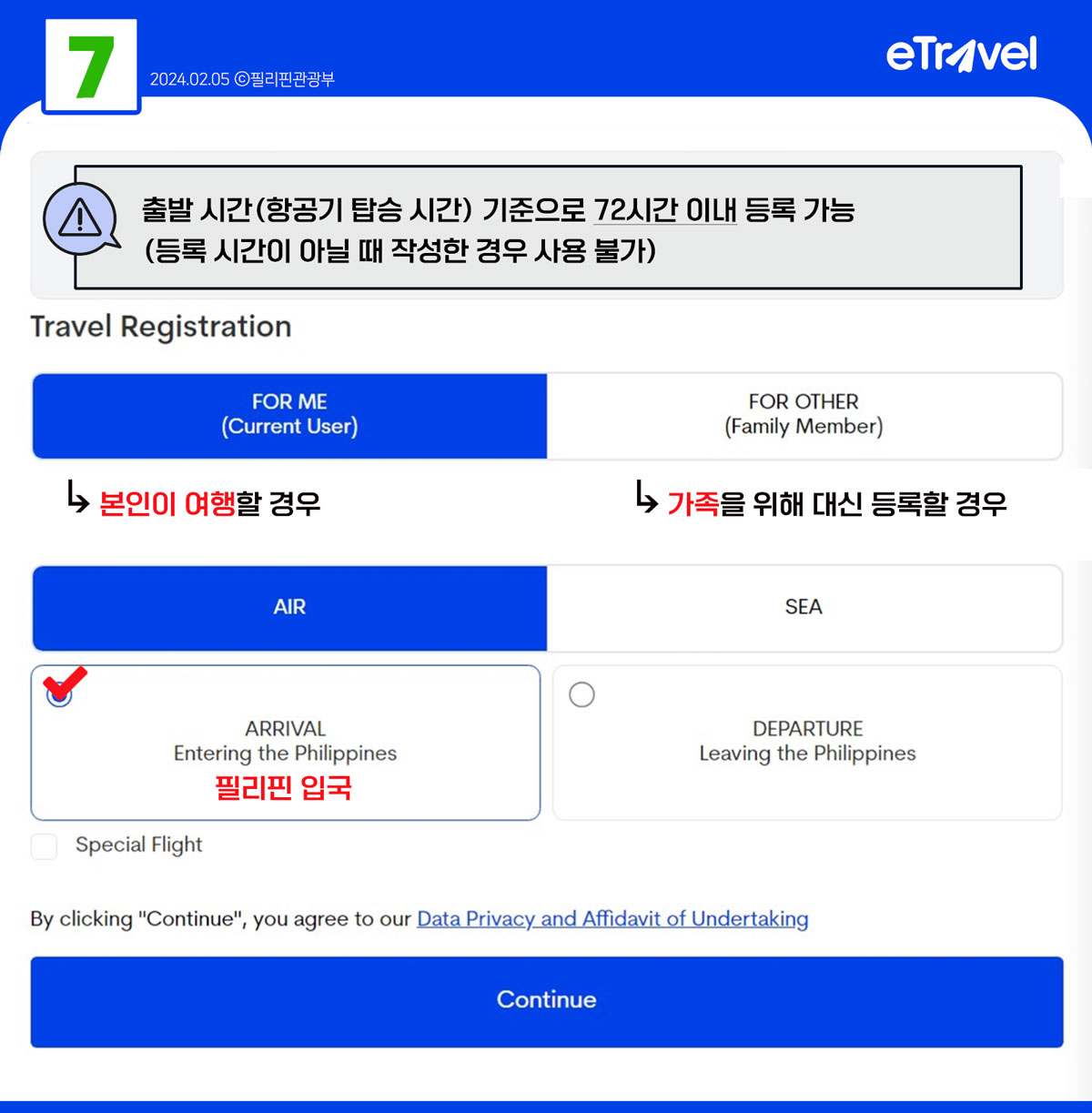 또한 필리핀 도착 전 72시간 안에만 등록할 수 있으니 이 점 참고하시어 진행해보세요!