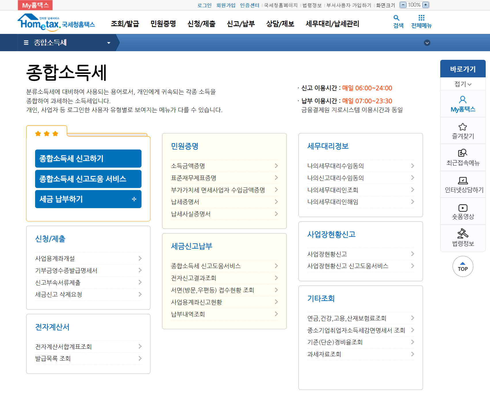 개인사업자는 연간 발생한 소득에 대해 5월 한 달간 세금을 신고 하고 납부해야 합니다. 이는 홈택스 종합소득세 신고를 이용하실 수 있는데요, 간단하게 확인할 수 있도록 사이트를 연결해 놓았습니다.